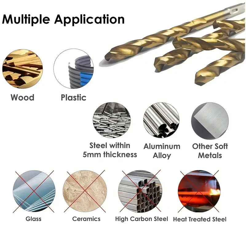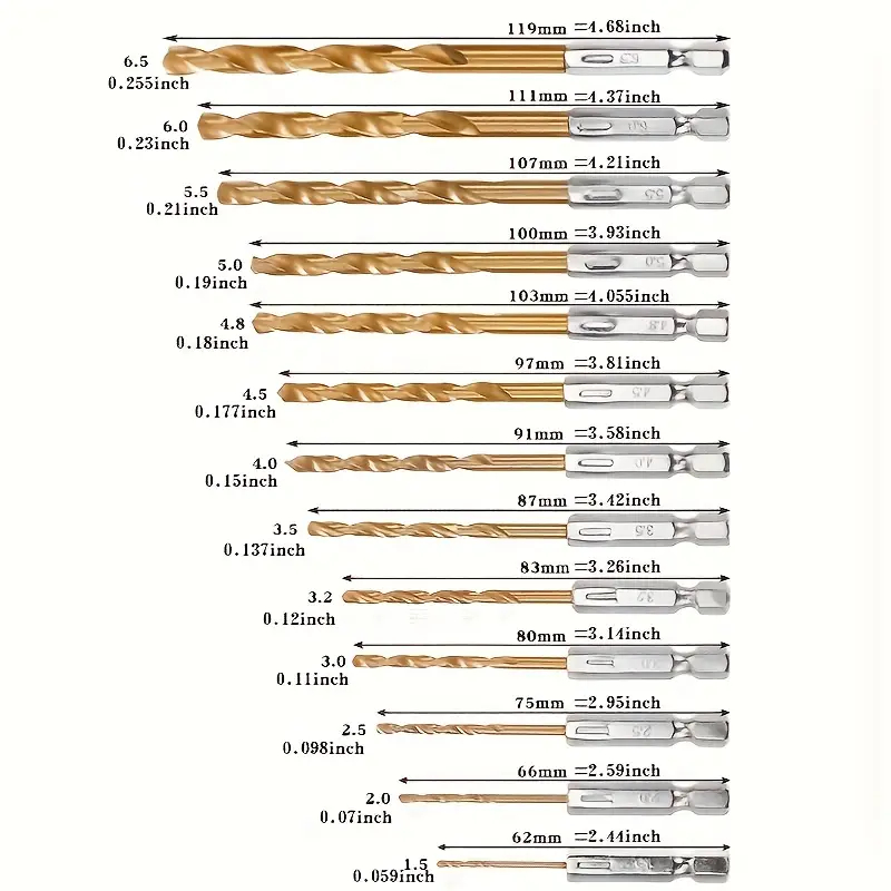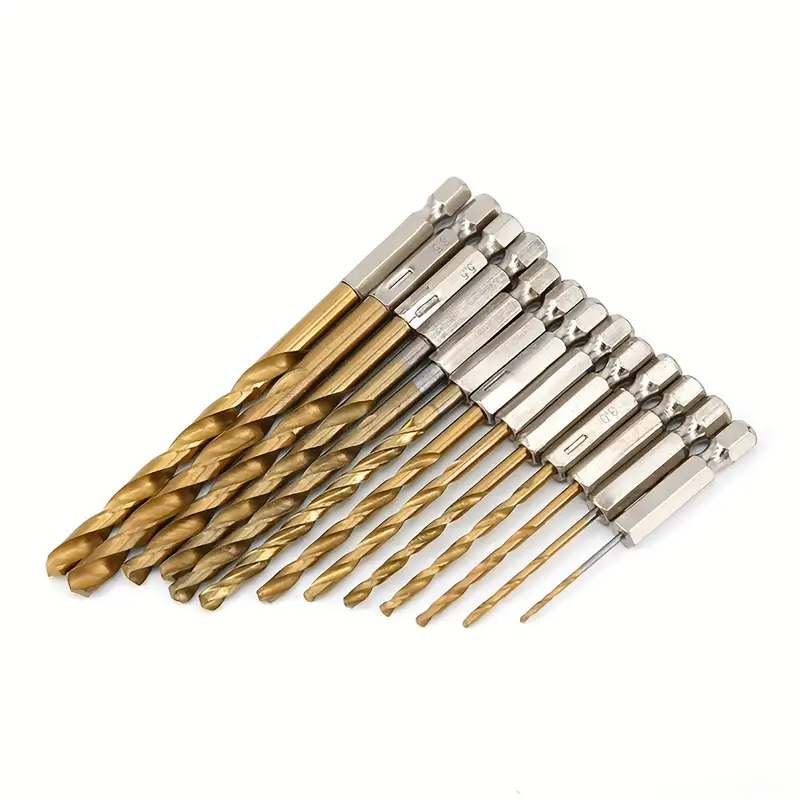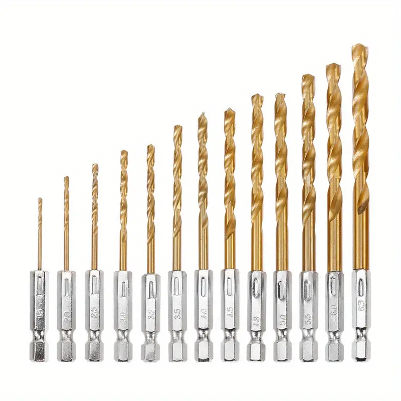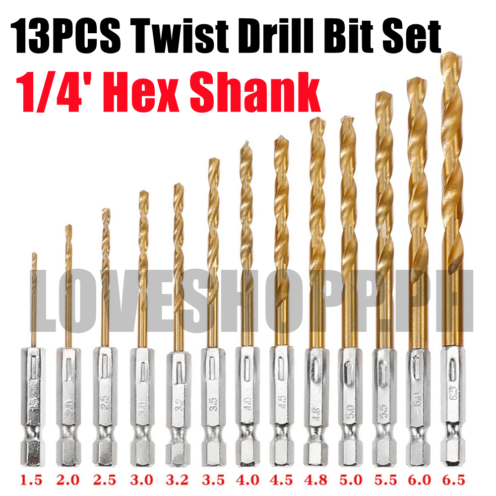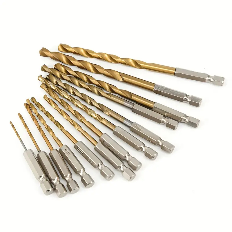 (13PCS)Hex Shank 1/4' Titanium Coated Twist Drill Bit Set For Metal Stainless Aluminum Masonry