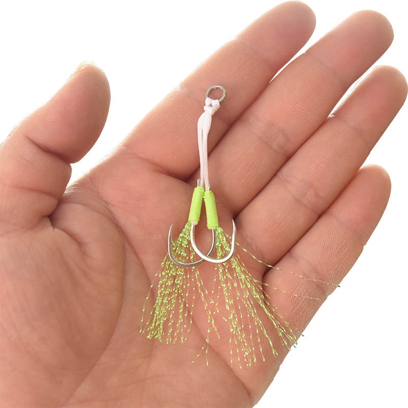 (1PCS)10#-20# Fishing Hook Assist Hooks Jig Lure Double Hook Slow Fast Double Pair Jigging Fishjig Assist Hooks