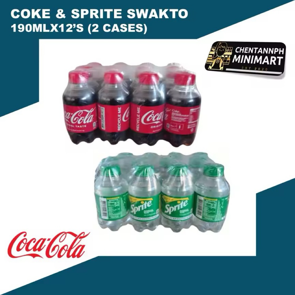 (2 CASES) Authentic Coca-cola COKE Original Taste and SPRITE Lemon-Lime Swakto 190 ml x 24 bottles