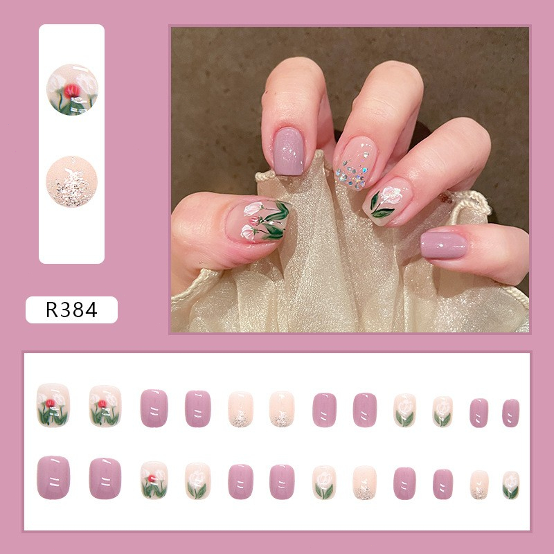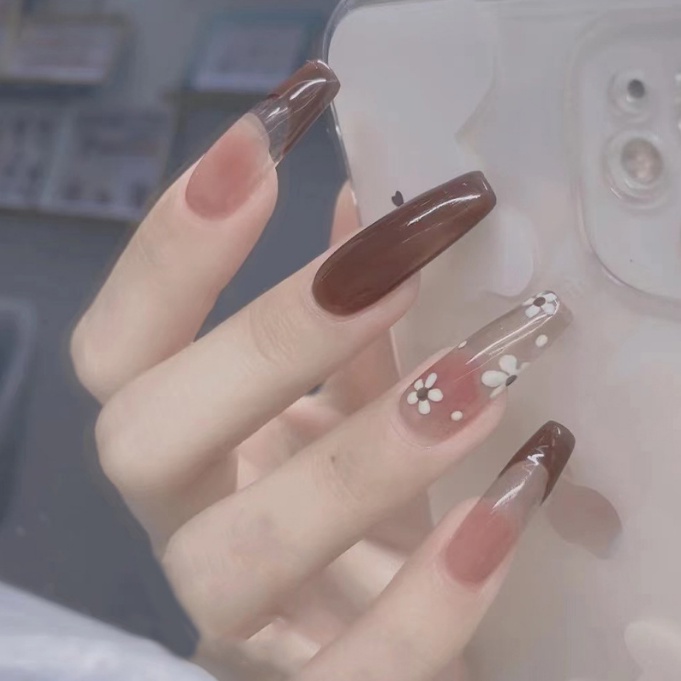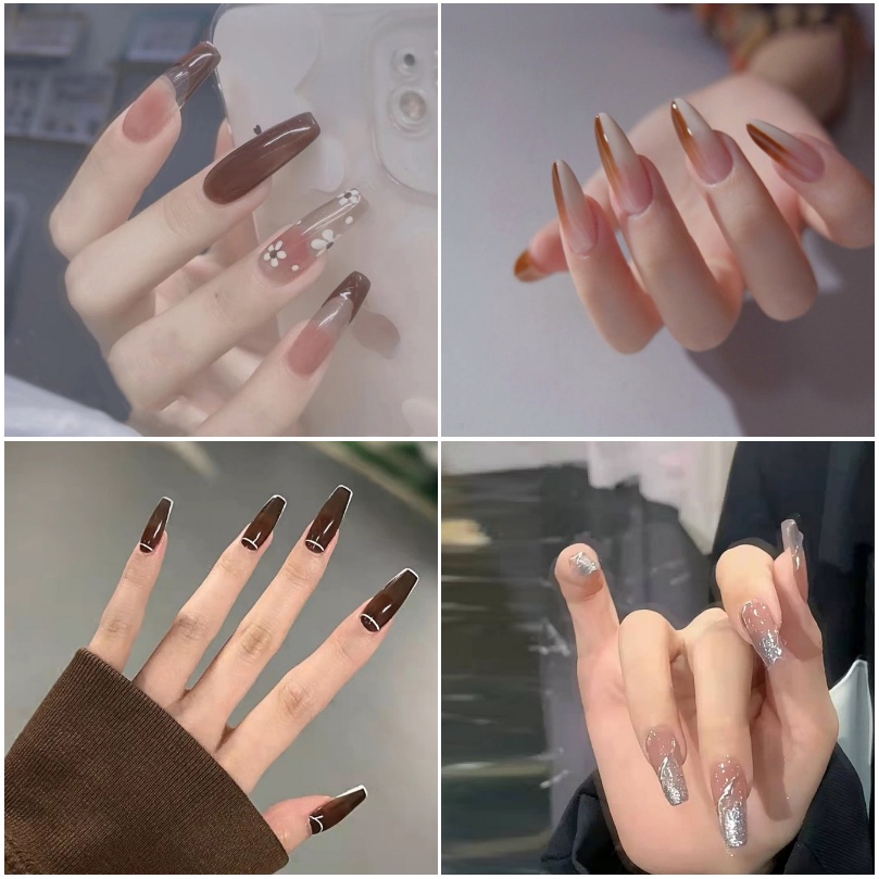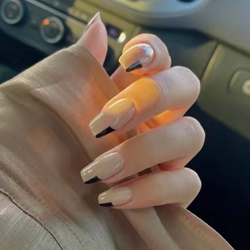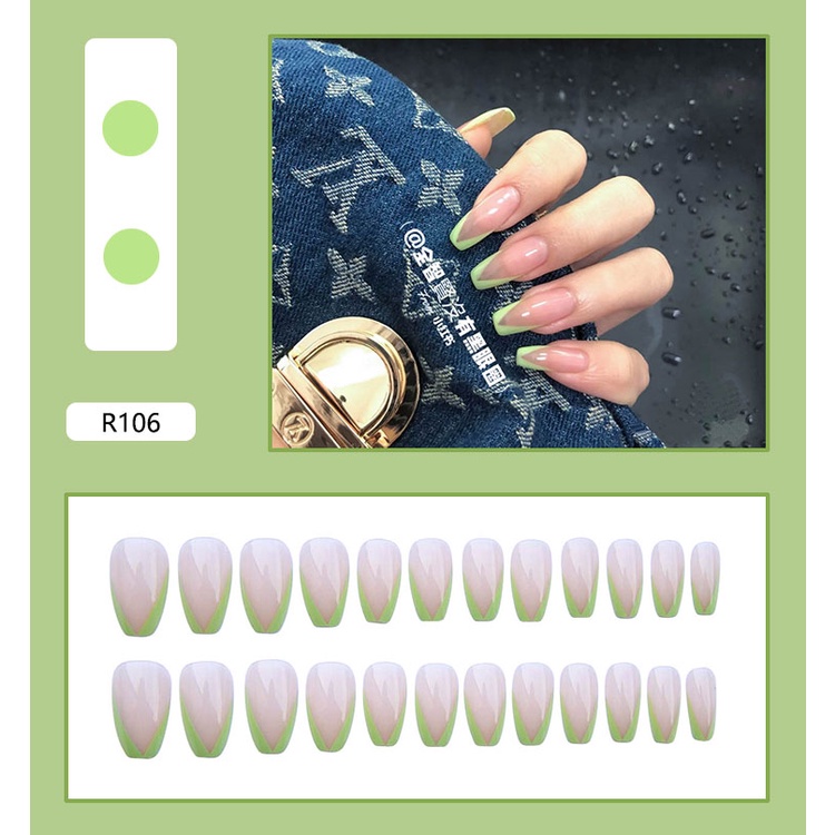 (2024 Hot Sale )24pcs Fake Nials With glue Long Style French Fake Nails With Design Artificial Nail