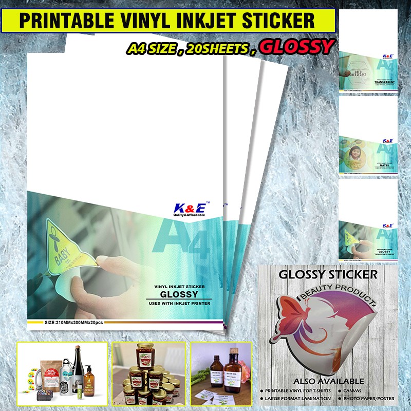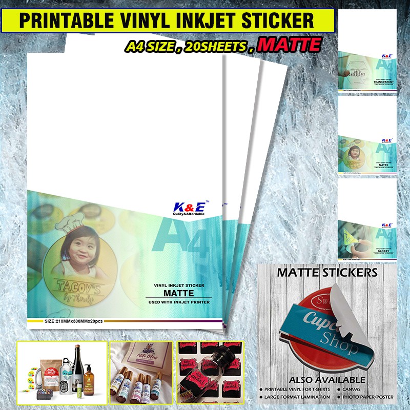 (20pcs)K&E Printable Vinyl Inkjet Sticker A4 Transparent/Glossy/Matte For Inkjet Printer Printing