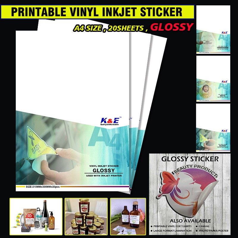 (20pcs/pk)Printable Vinyl inkjet sticker(clear sticker) transparent/glossy/matte