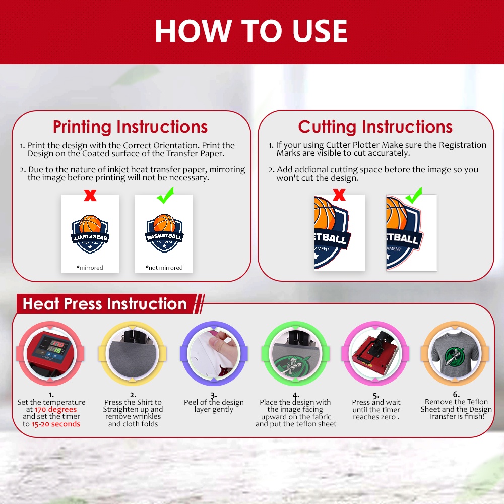 (20sheets) CUYI Dark Transfer Paper A4 Size for dye ink/pigment ink print