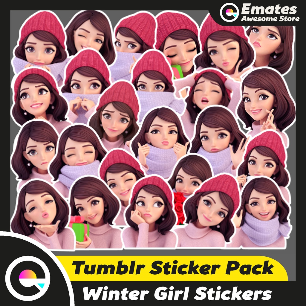 (24 Pcs) aesthetic Winter Girl Sticker aesthetic Sticker Tumblr Sticker hp aesthetic Wall Stickers aesthetic aesthetic Room laptop Stickers