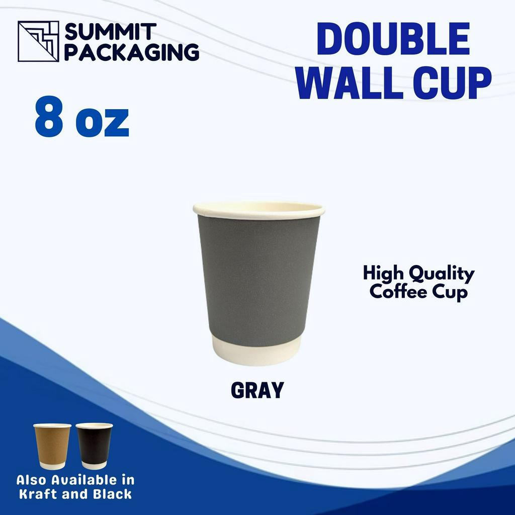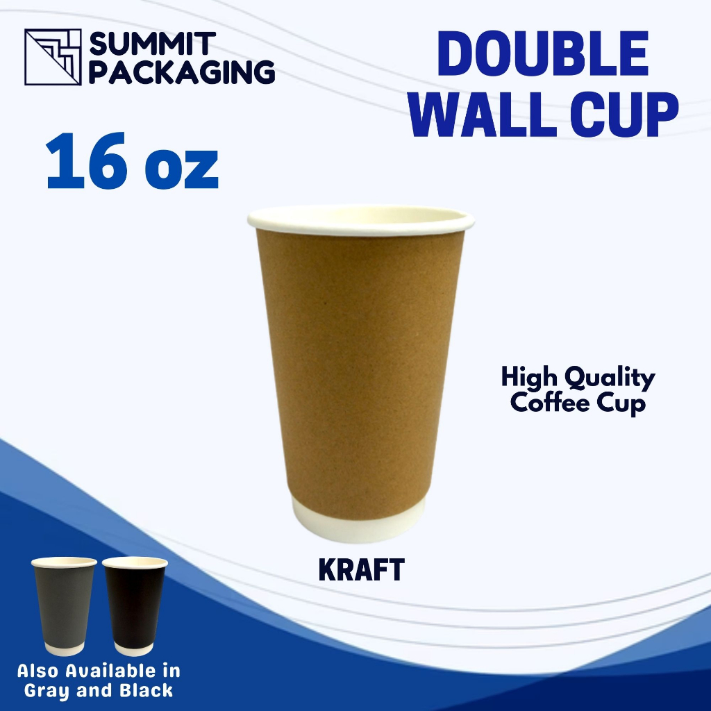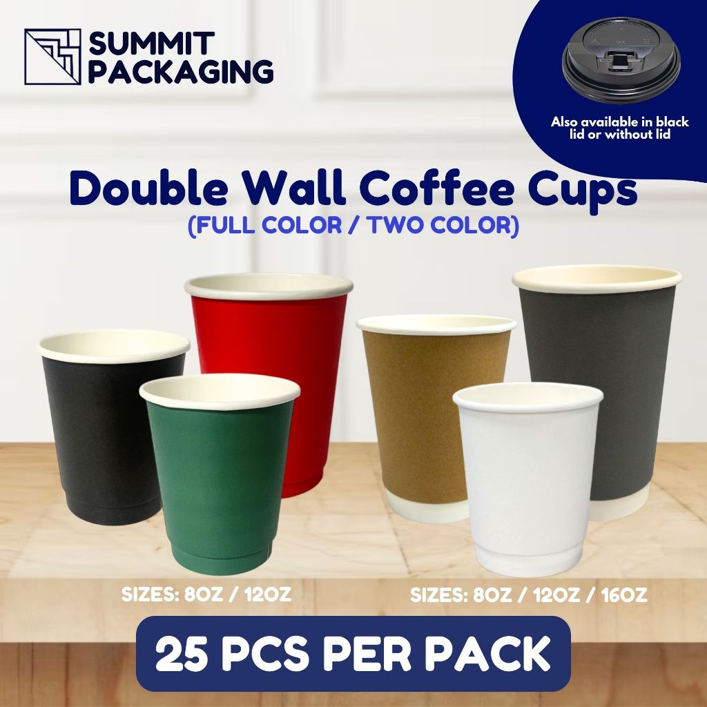 (25pcs) Double Wall Coffee Cup - 8oz | 12oz | 16oz Black / Gray / Kraft / White With or Without lid