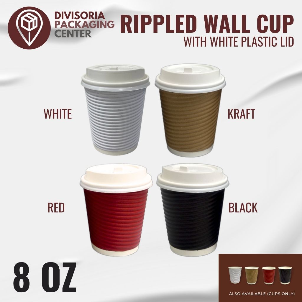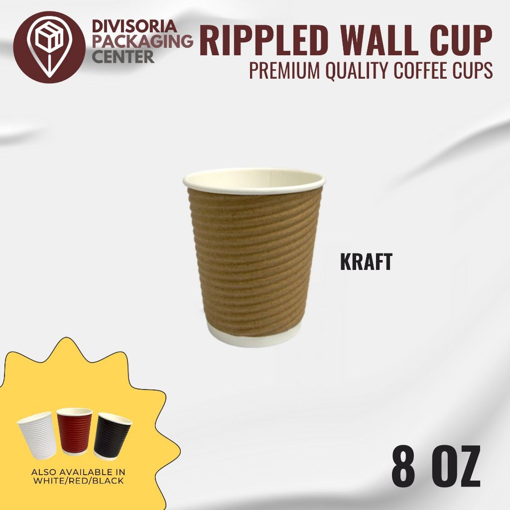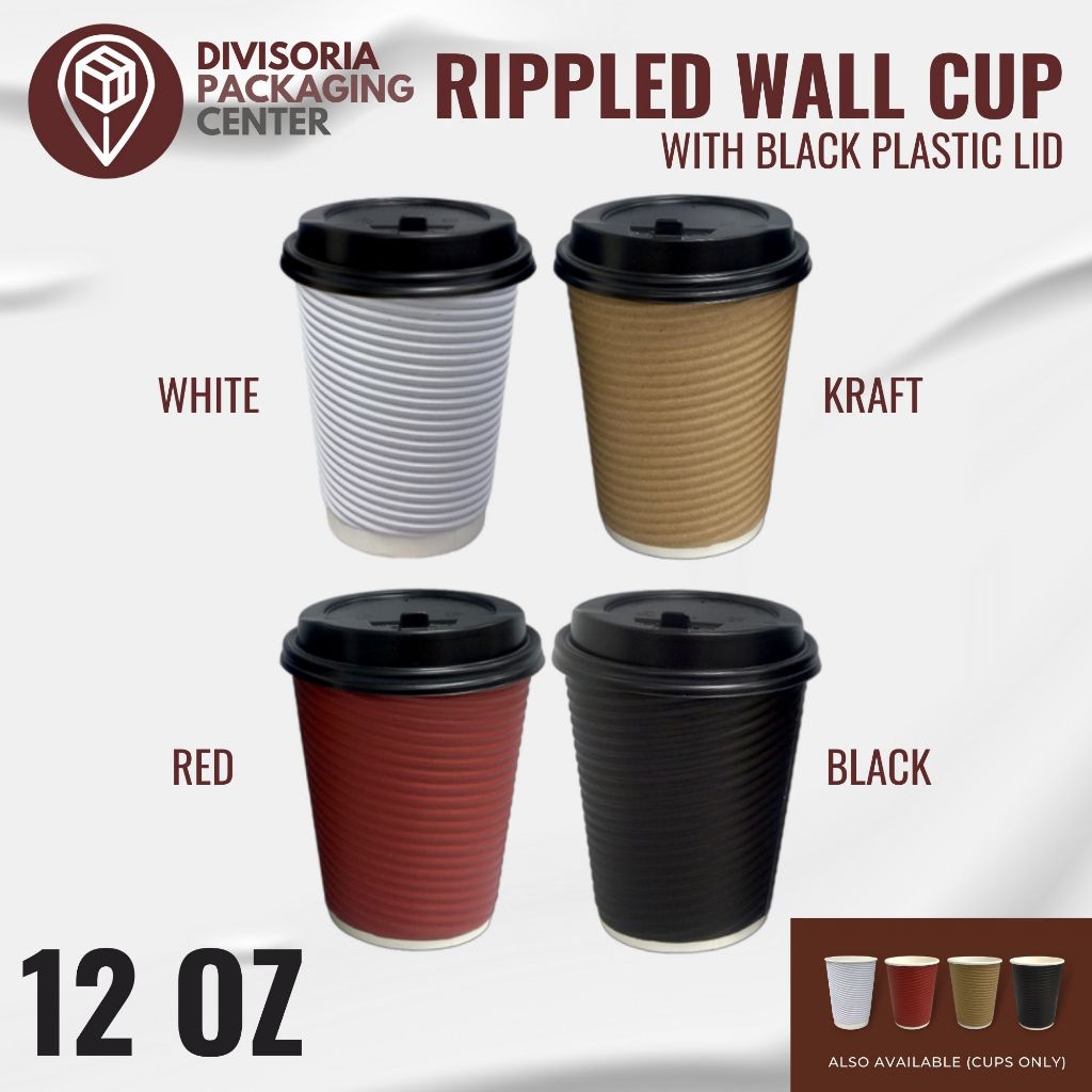 (25pcs) Rippled Coffee Cup [8oz | 12oz| 16oz] - Black / Gray / Kraft / White With or Without Lid