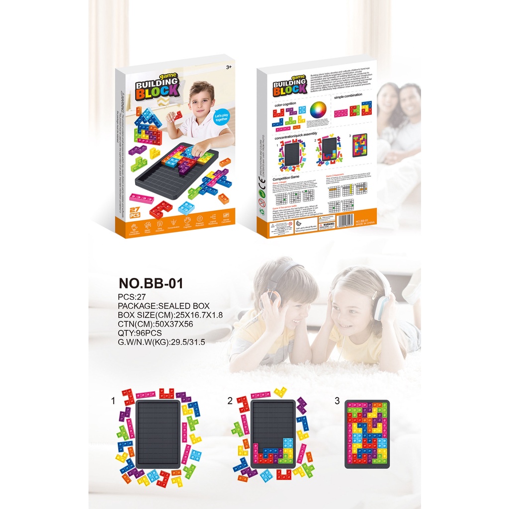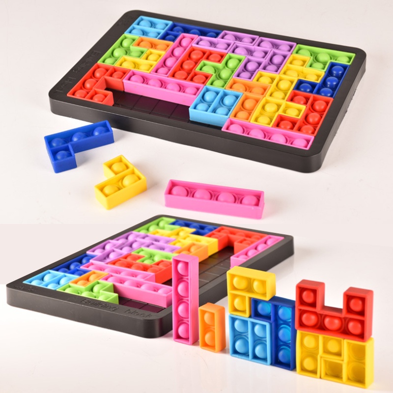 (27pcs) Pop It Puzzle Fidget Tetris Jigsaw Toys Squeeze Toys Russian Blocks Game Puzzle Relieves Stress and Anxiety Fidget Toy for Kids Adult