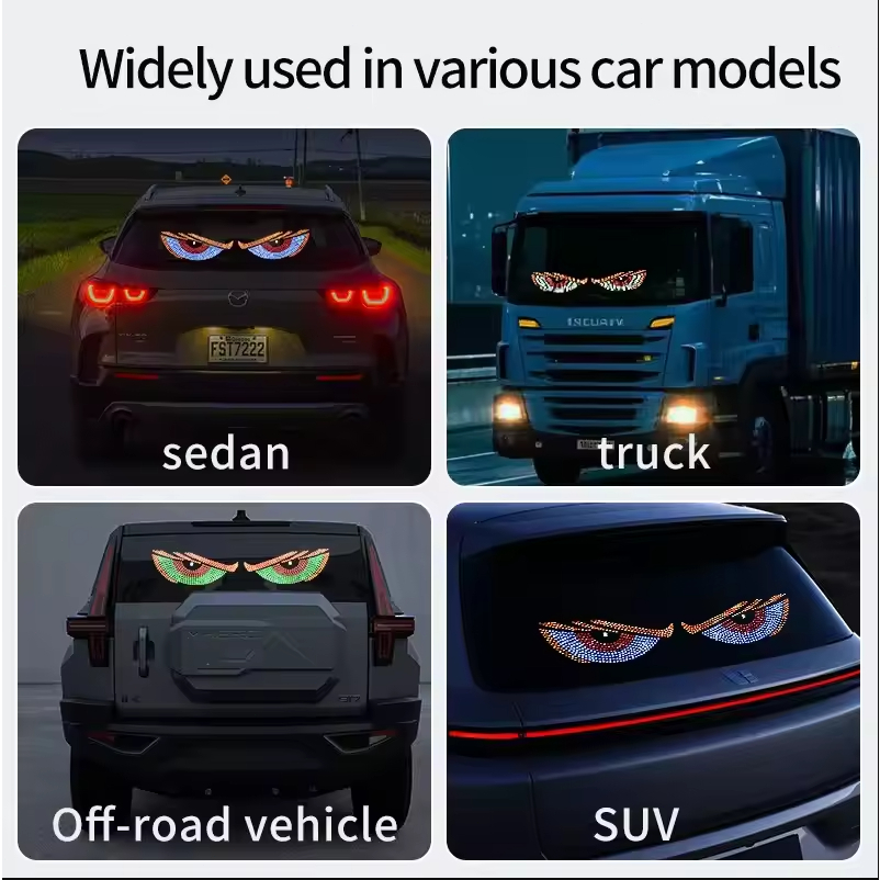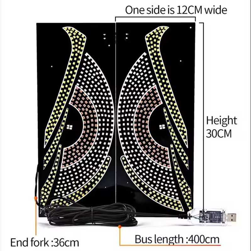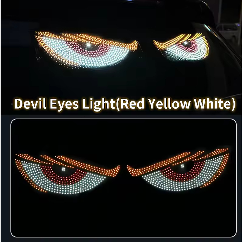 (2PCS) USB LED Devil's Eyes Car Dynamic Devil's Eyes Lights Ambient Lights DIY Car Window Screen LED Display Phantom Soft Screen for Truck Multi Mode