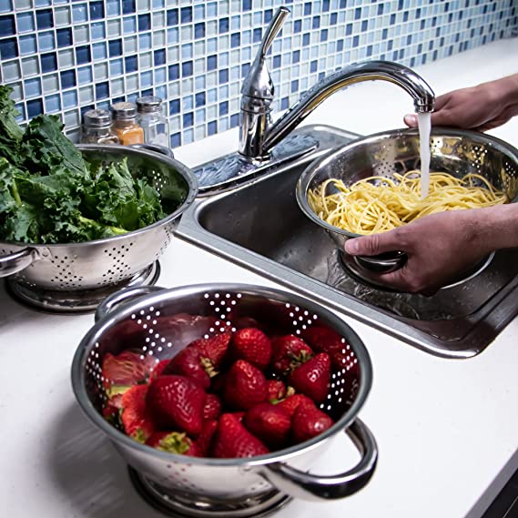 (3 IN 1) Colander Stainless Steel for Spaghetti, Pasta, Fruits, Vegetables and Noodles, Rust Proof