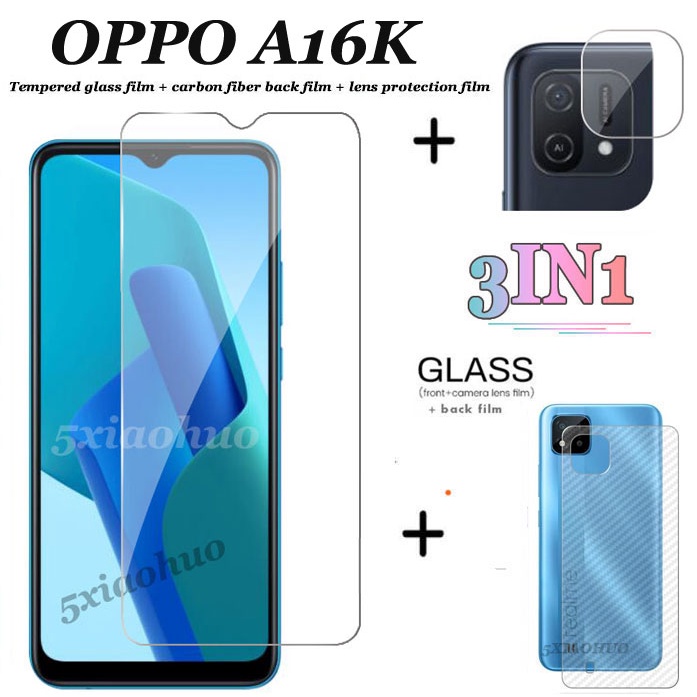 (3in1) For OPPO A16K A16 A15 A15S A12 full-screen tempered glass Screen Protector film + carbon fiber back film + camera lens film