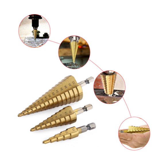 (3pcs/1pcs) HSS High Speed Steel Titanium Hex Shank Step Drill Bit Set 3-12mm 4-12mm 4-20mm 4-32mm