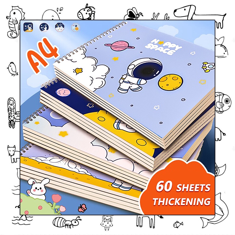 (4 Books) A4 Large Drawing Book for Kids/Sketch Book/Perforated Book/Art Book/Blank Drawing Book/Blank Sketch Hand Drawing Graffiti For Kids School Supplies