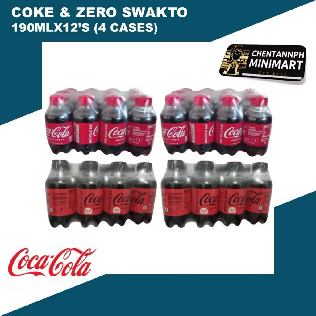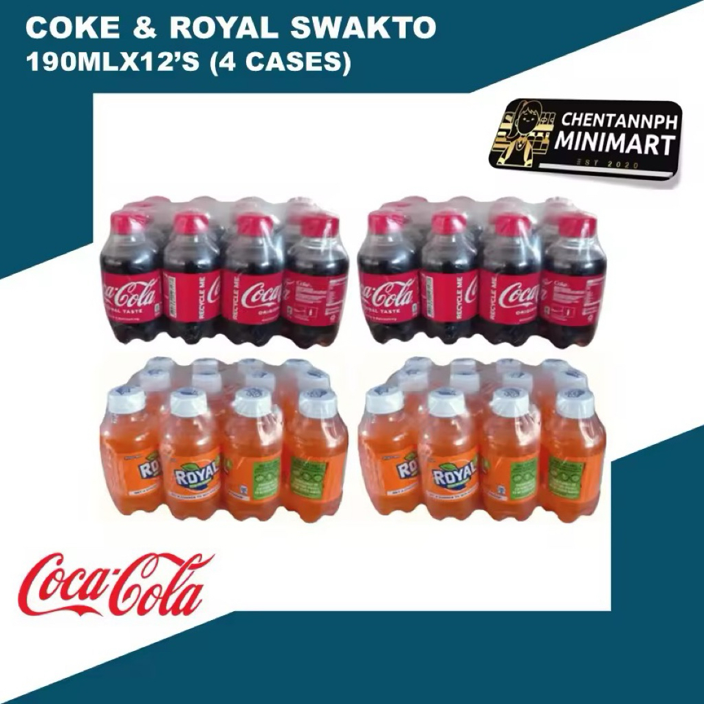 (4 CASES) COCA-COLA Swakto Sprite,Royal,Zero,Coke Original Taste Softdrinks Soda 190 mL X 48 pieces