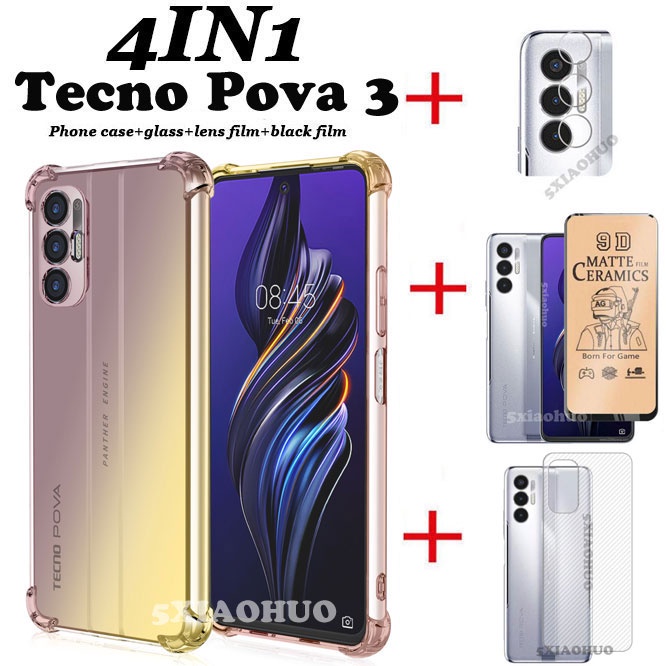 (4 in 1) Tecno Pova 3 Phone Case Tecno Pova 2 Color Gradient Phone Case + Screen Ceramic Film + Lens Film+back film