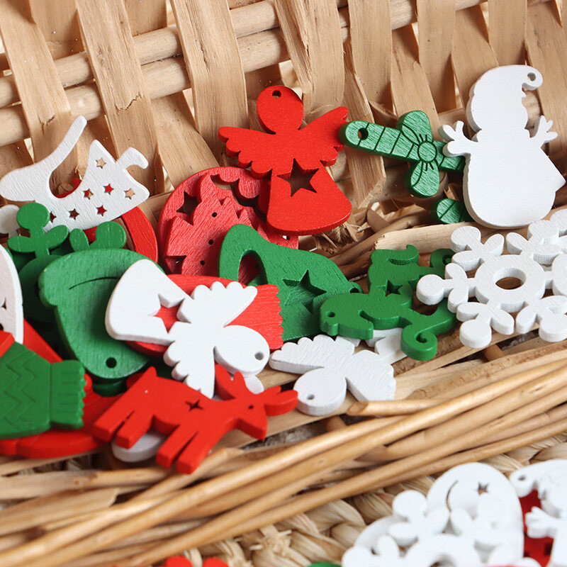 (50 Pcs/pack) 15mm-33mm Christmas decoration mixed hollow wooden wood Christmas tree props desktop ornaments building block toys DIY