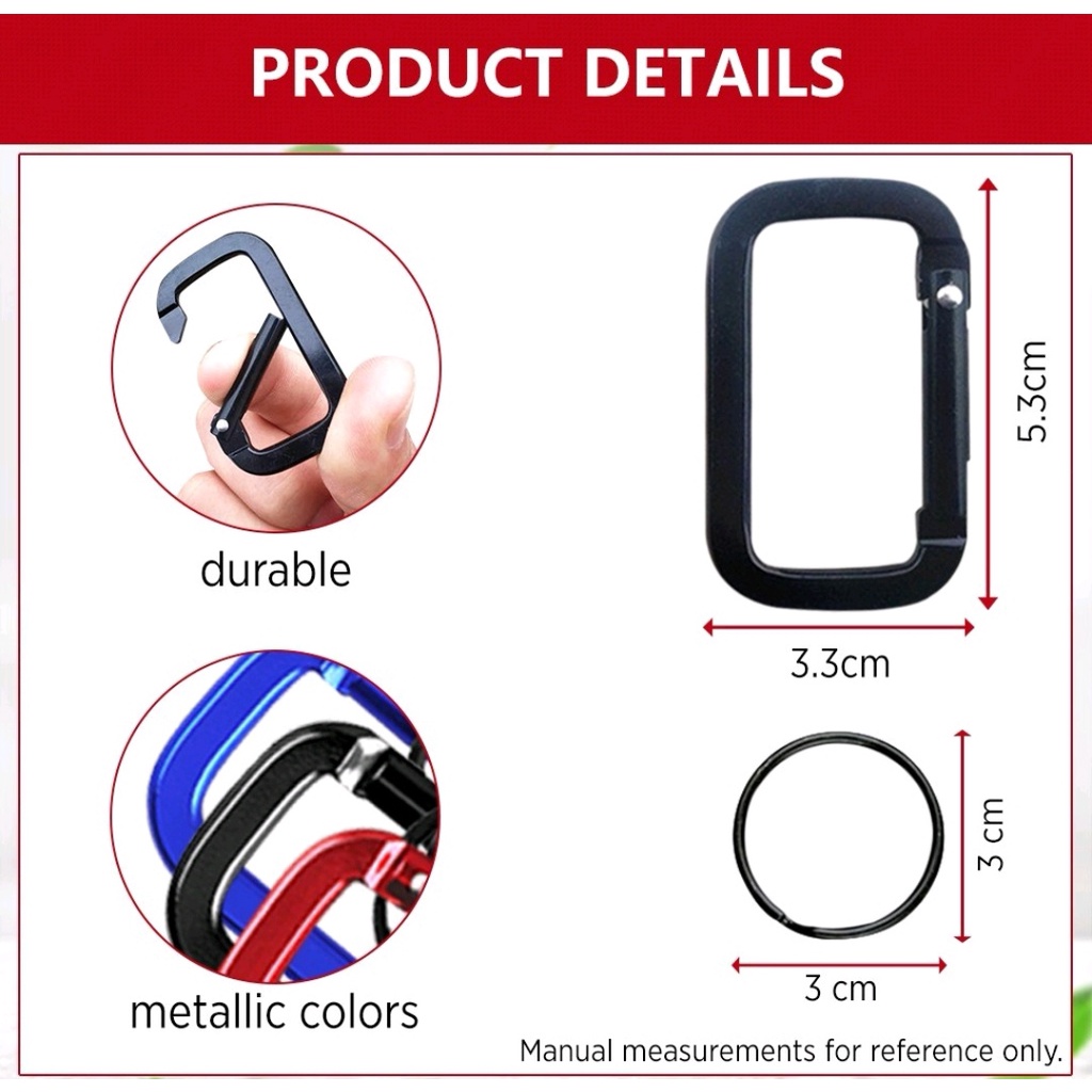 (50 pcs) Square Carabiner with Circle Hook for Key Holder Making