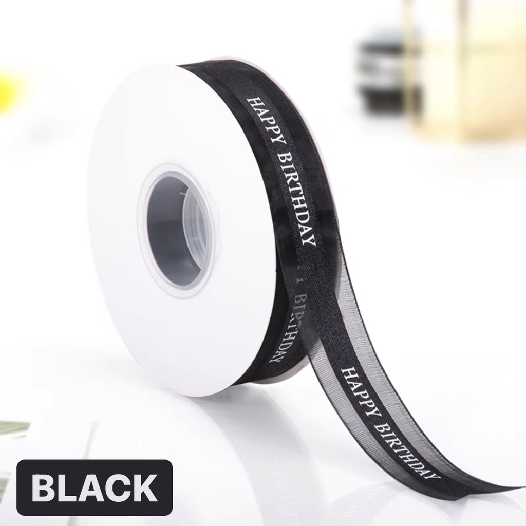 (50 yards/roll) 2.5cm Happy Birthday Satin Ribbon Roll Gift Packaging DIY Regalo HBD RIbbon Corner