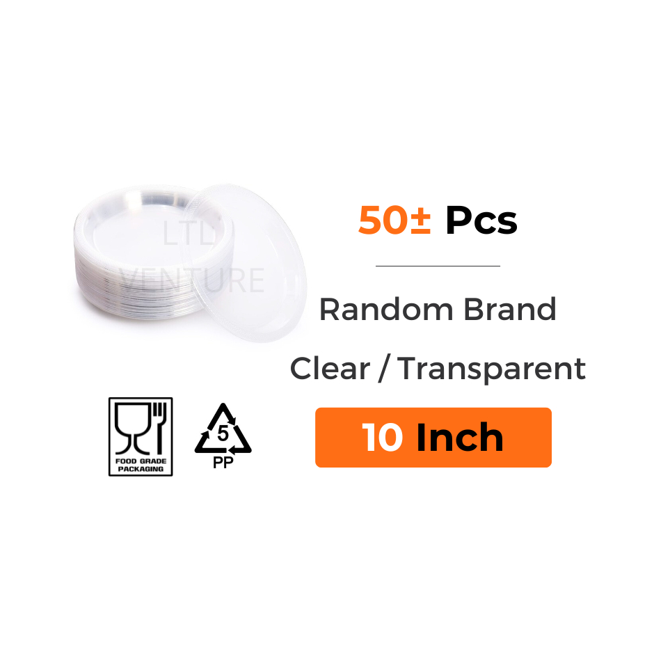 (50Pcs) 7/9/10" Inch PP Plate Clear/Disposable Plastic Plate Transparent/Pinggan Plastik/Party Event