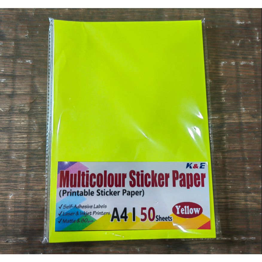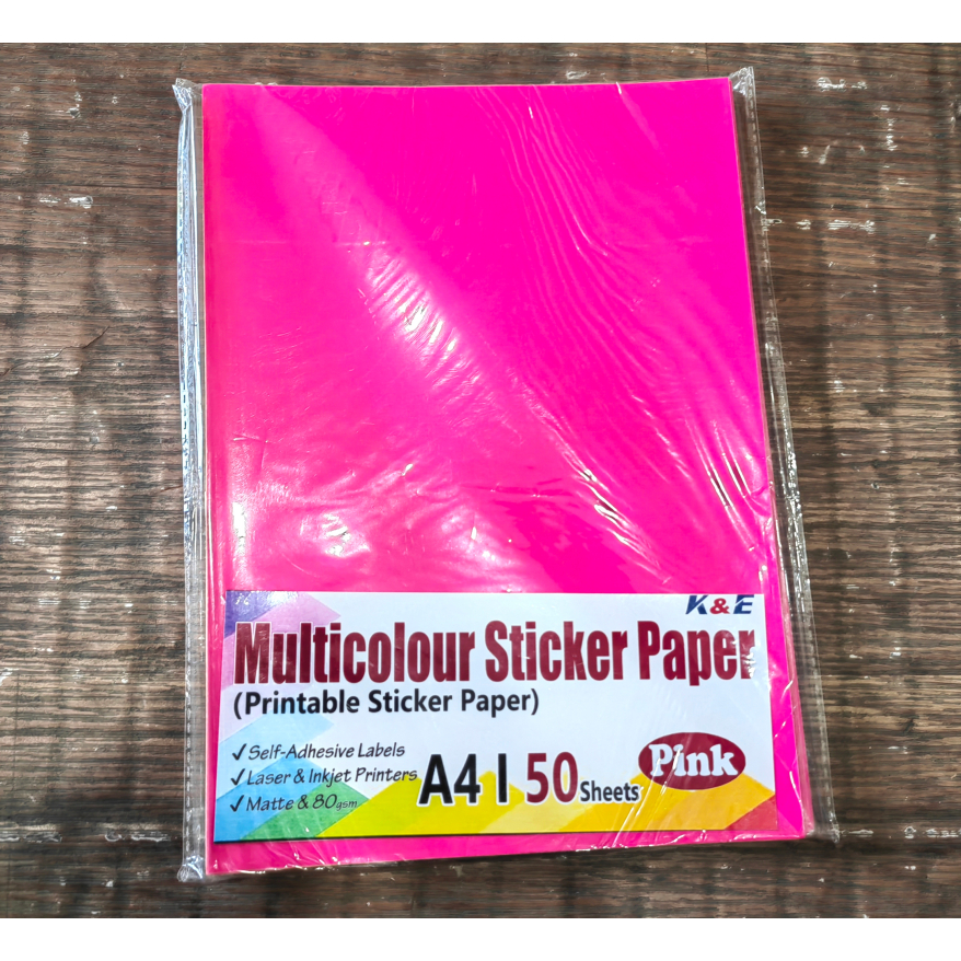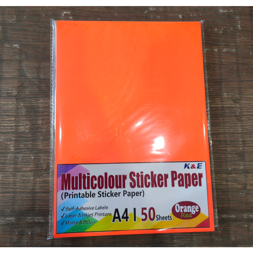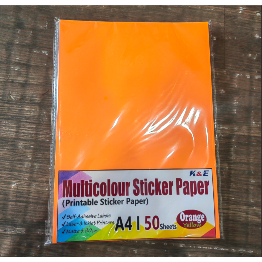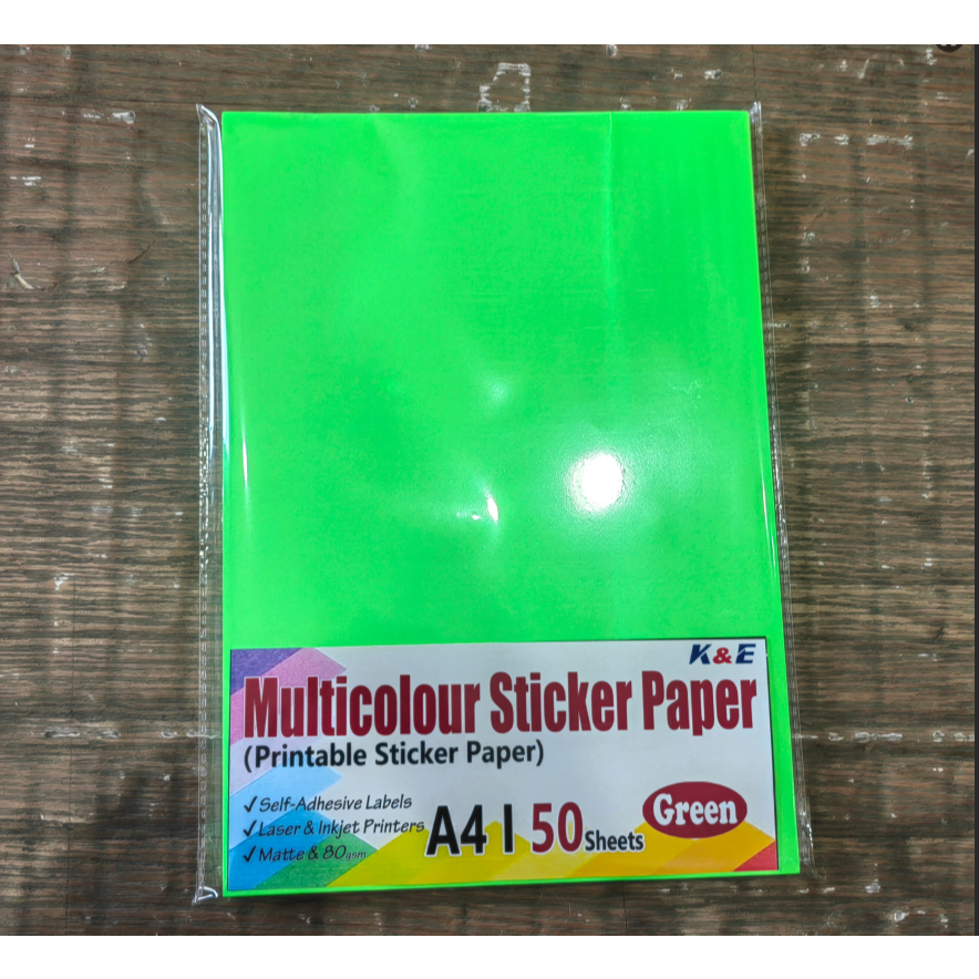 (50pcs) Neon Color Printable Sticker Paper A4 ,80gsm,matte for inkjet printer printing