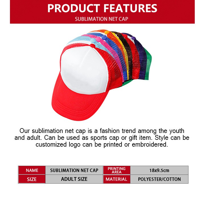 (50pcs) QUAFF Net Cap for Sublimation Printing | Plain Baseball Trucker Mesh Cap