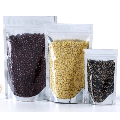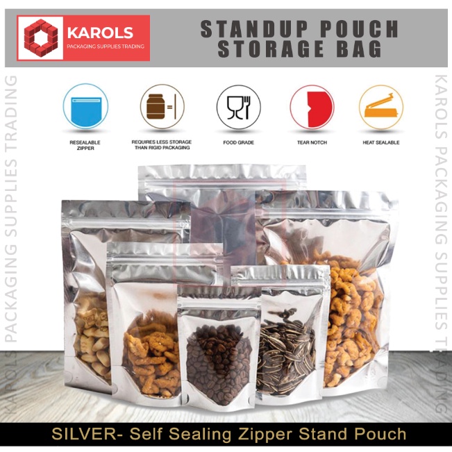 (50pcs) STAND UP/ FLAT POUCH One Side Clear Half Silver Pouch