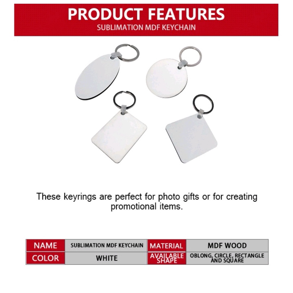 (50pcs) Sublimation Printable MDF Wood Keychain Blanks