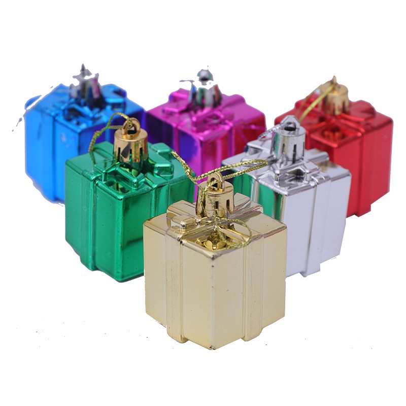 (6 Pieces/pack) 5.5cm Christmas Tree Gift Box Decoration Mini Plastic Boxes Xmas Pendant Multi-color Party Supplies Holiday Decorations Accessories