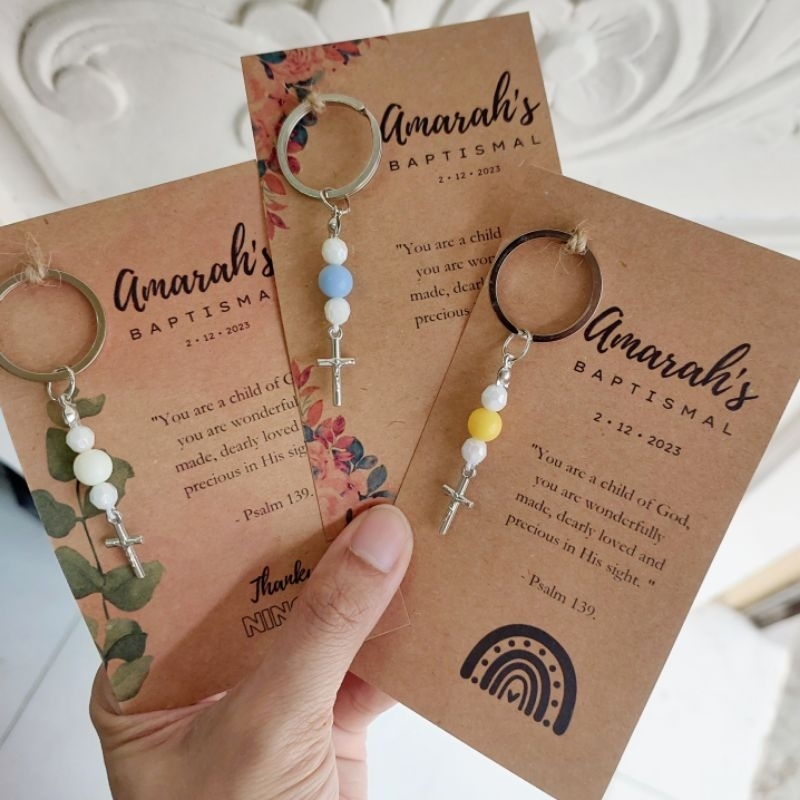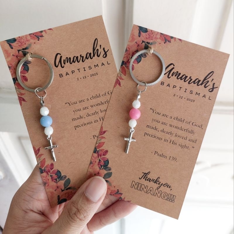 (6PCS W/PACKAGING) Baptism Baptismal Christening Souvenir Giveaways Baby Rosary Cross Keychain