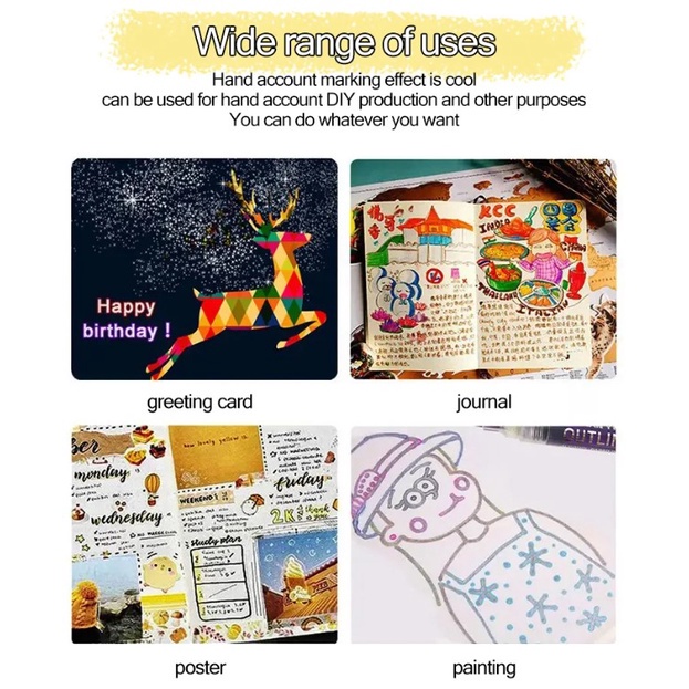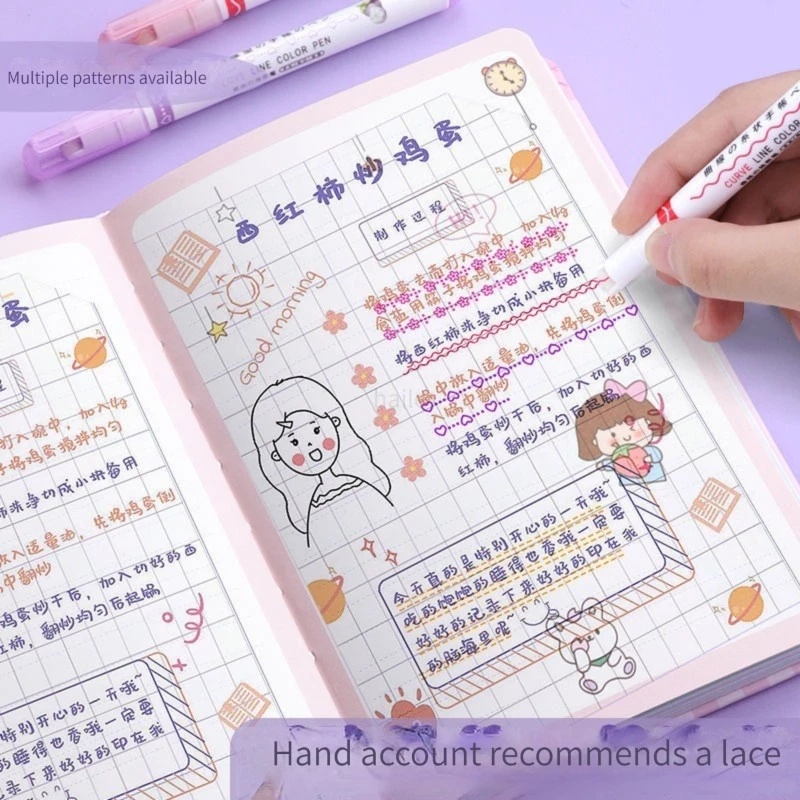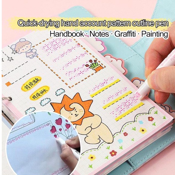 (6pcs) Double line outline pen set dream hand account pen quick-drying pen student pen Highlighter