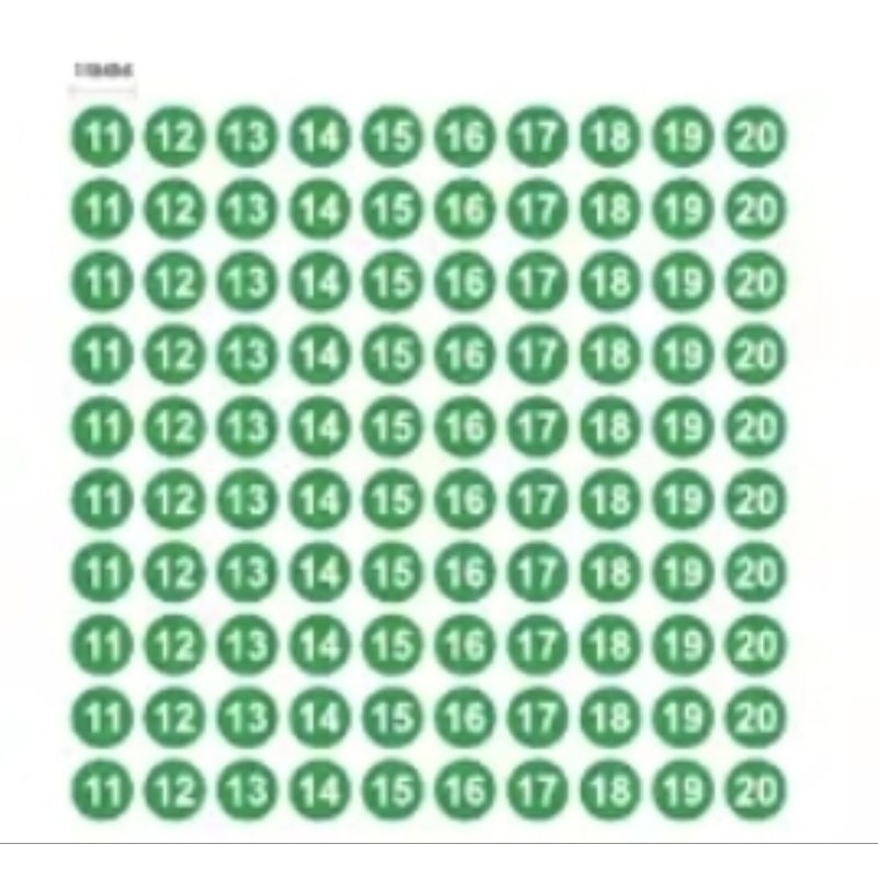 (8 colors) 1-10 / 11-20 WATERPROOF MINI NUMBER LABEL STICKER SHEET