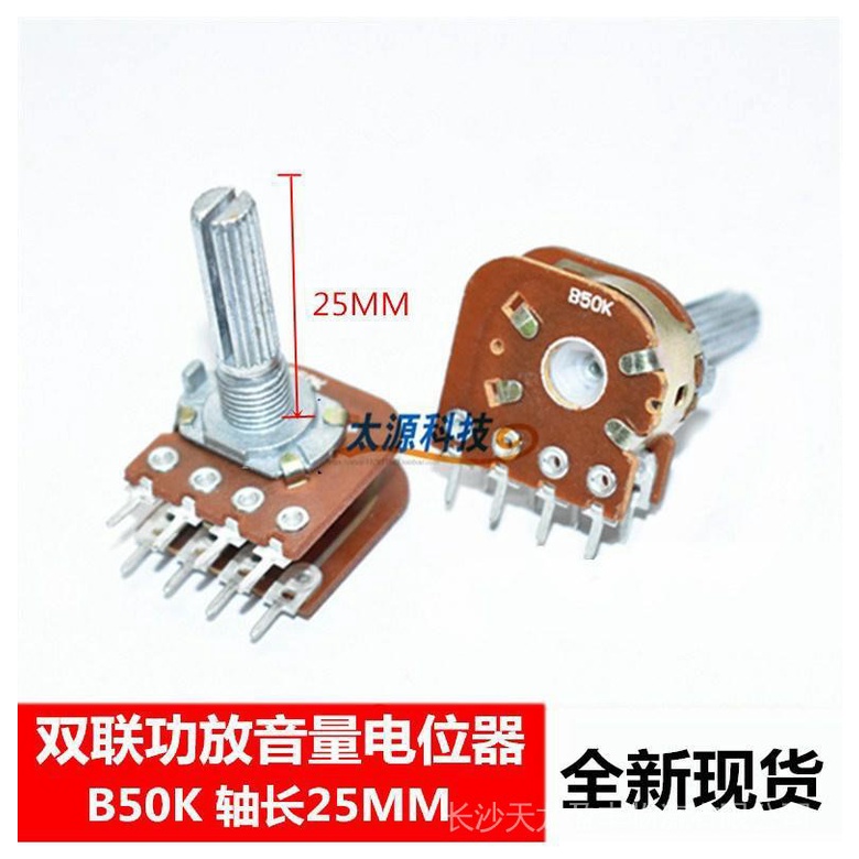 (8.9) Original B50K Dual Audio Speaker Stepping Power Amplifier Volume Potentiometer Flower Axis 8-Pin Handle Length 25mm Double Connection MM72