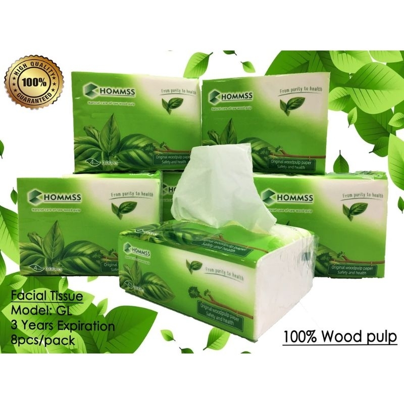 (8pcs/pack) 300 Sheet Wood Pulp Facial Tissue 4ply Soft Interfolded Facial Tissue Paper