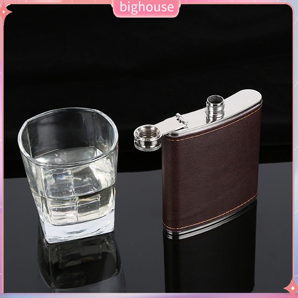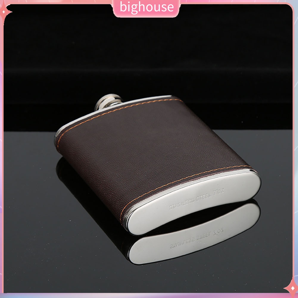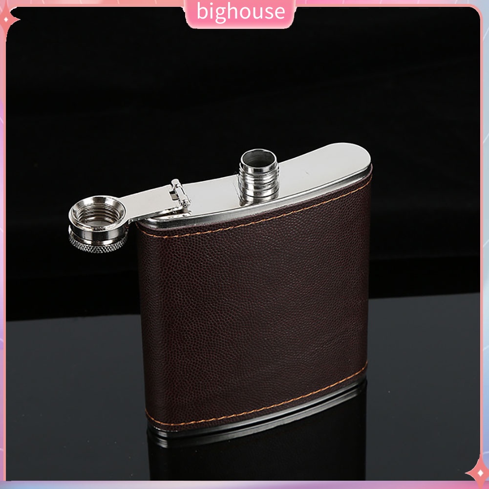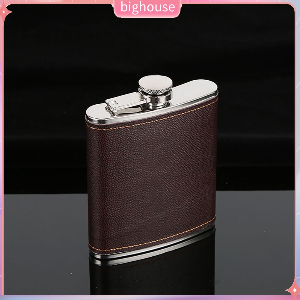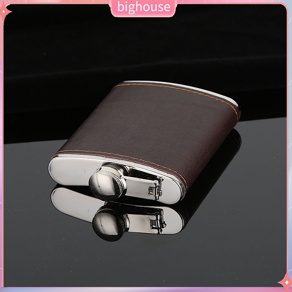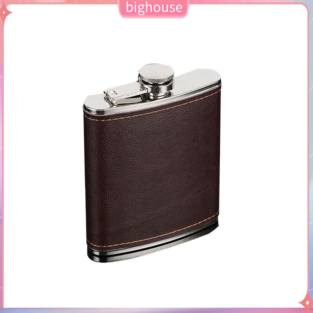 (BH) Men Faux Leather Wrapped Stainless Steel Vodka Whiskey Alcohol Hip Flask 5-9oz