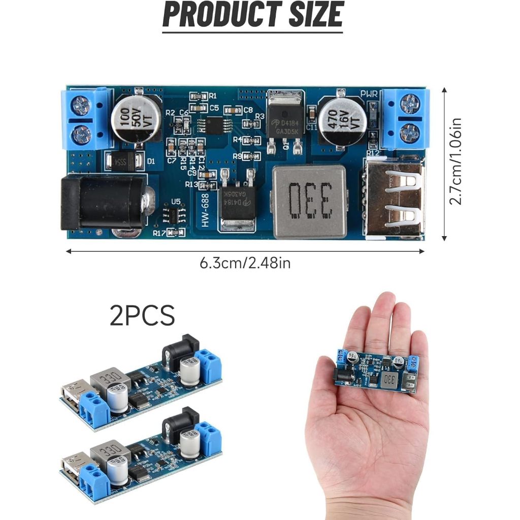 (BLUE) Step Down Power Supply Module USB Charging DC Power Converter Module New (24V/12V to 5V BLUE)