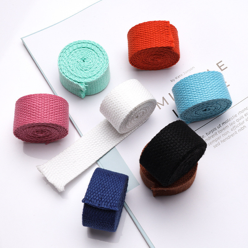 (Buy 3 get 1 free)Ready Stock Wholesale Color Plain Weave Polyester Cotton Webbing Belt Canvas Bag Luggage Shoulder Strap Bundled Packing Belt
