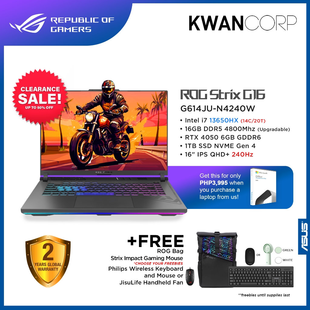 (CLEARANCE) Asus ROG Strix Scar G16 G614JU-N4240W Intel i7 13650HX 16GB RAM RTX 4050 6GB 1TB SSD