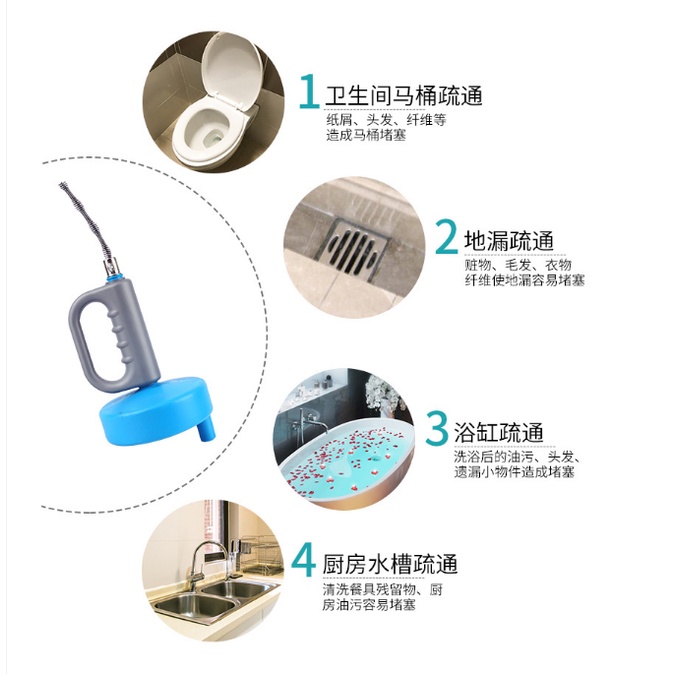(COD) Pipe Unblocker Pipe Drain Blockage Cleaner Hook Steel Spring Cable Drain Cleaner