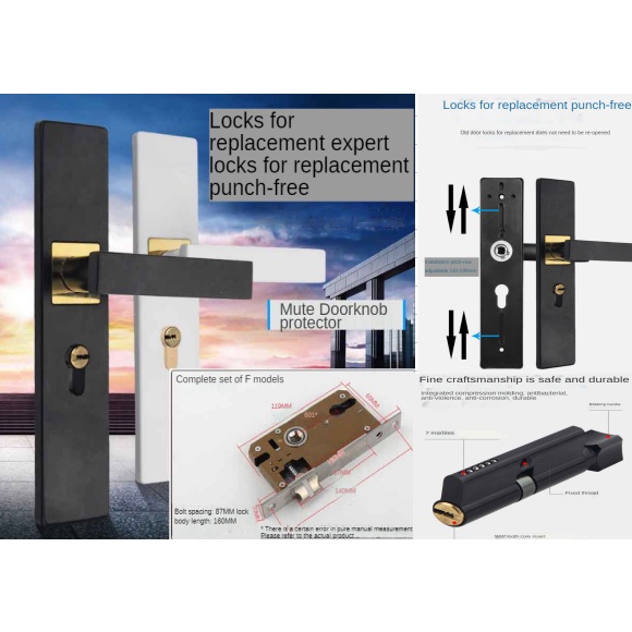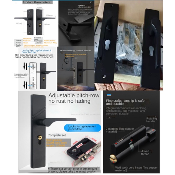 (COD)304 stainless steel door lock set silent door handle anti-theft room double lock set
