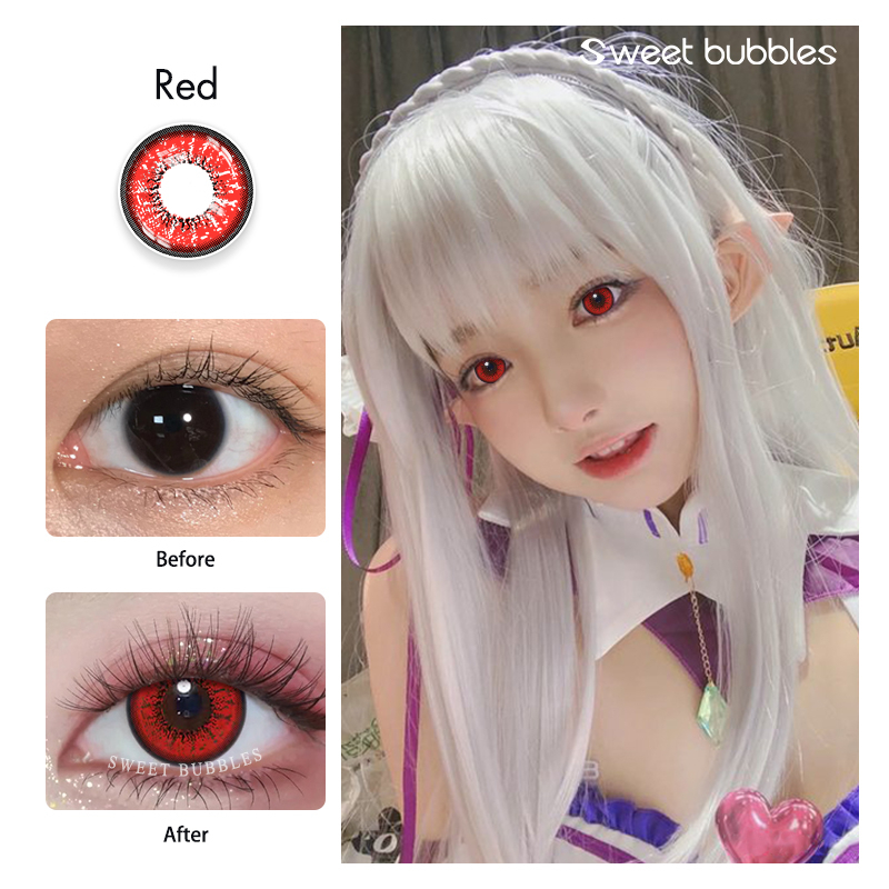 (COD&Ready stock)Eye Contact lens Cosplay Red Blue Color Soft Contact lense 1 Pair=2PCS 14.5/14.2mm