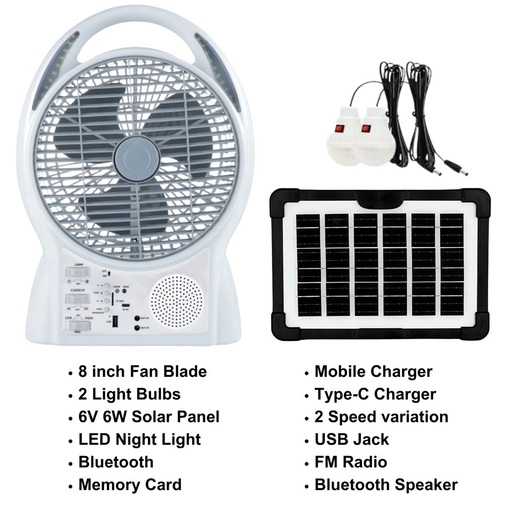 (Free Solar Panel) Solar Rechargeable Electric Fan Desk Fan with LED Light Fm Radio