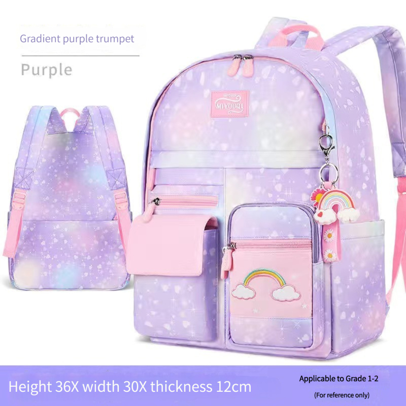 (Girls' version) - Large capacity primary school children's backpack Rainbow appearance cute backpack suitable for 1st, 2nd, 3rd to 6th grade girls' spine protection to reduce burden, multi pocket fashionable casual backpack