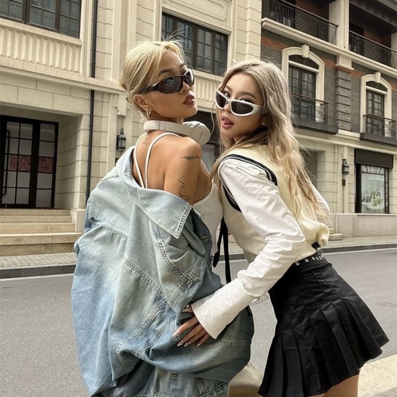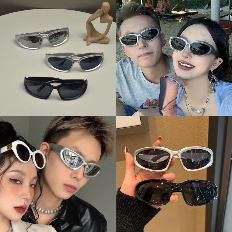 (HENGHA) Y2K Millennial Alien Futuristic Babes Sport Riding Sunglasses New Punk Sunglasses Unisex