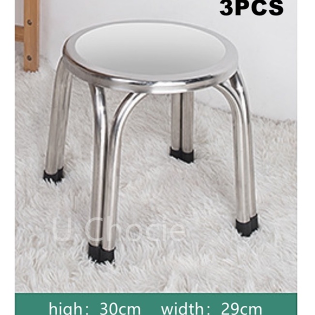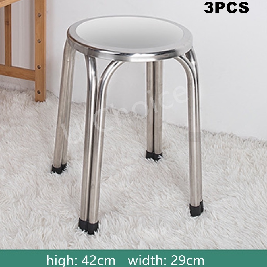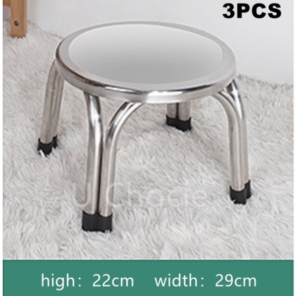 (HIGH QUALITY) Stainless Steel Stool Metal Round Chair 3pcs