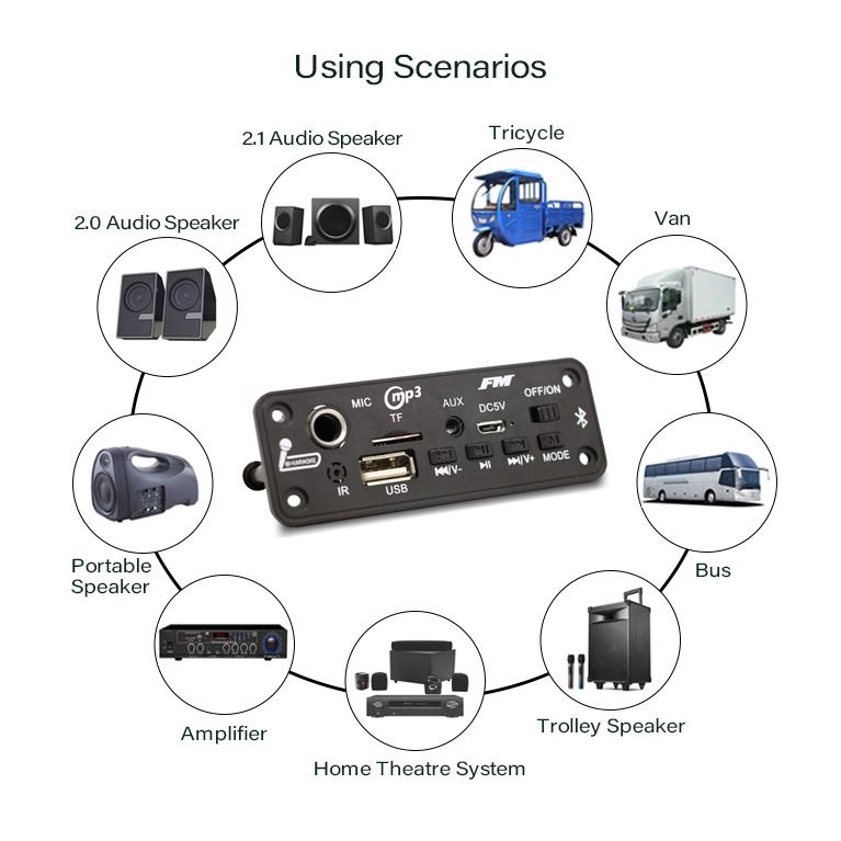(Local Seller) 10W Amplifier Bluetooth MP3 Wireless Decoder Board 5W DC 5V Music Player Car FM Radio Module TF USB Record Handsfree Call Microphone
