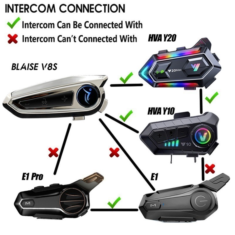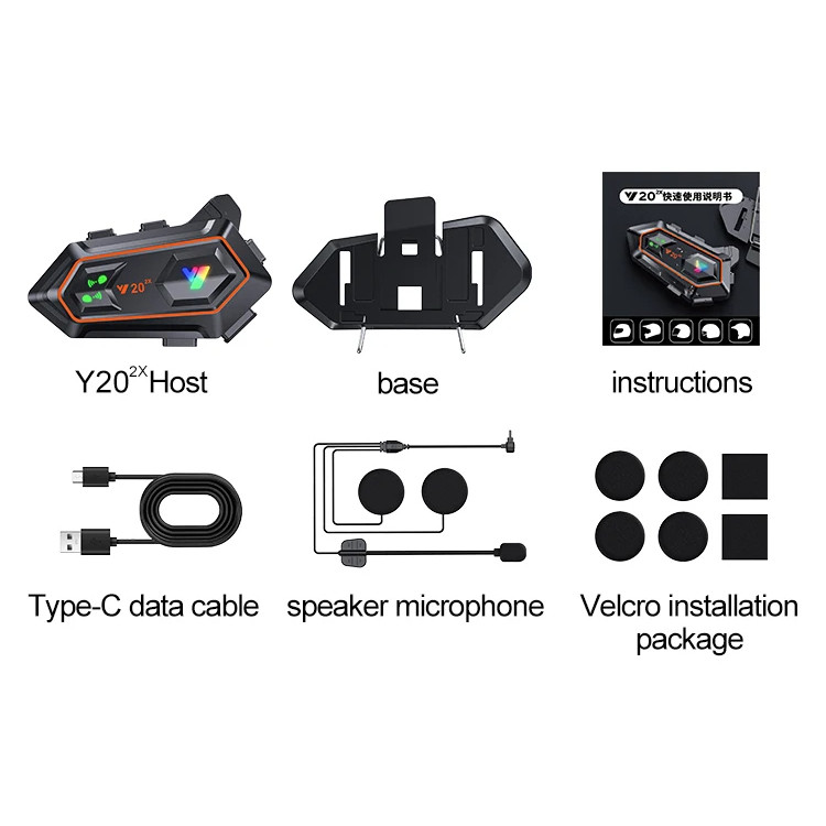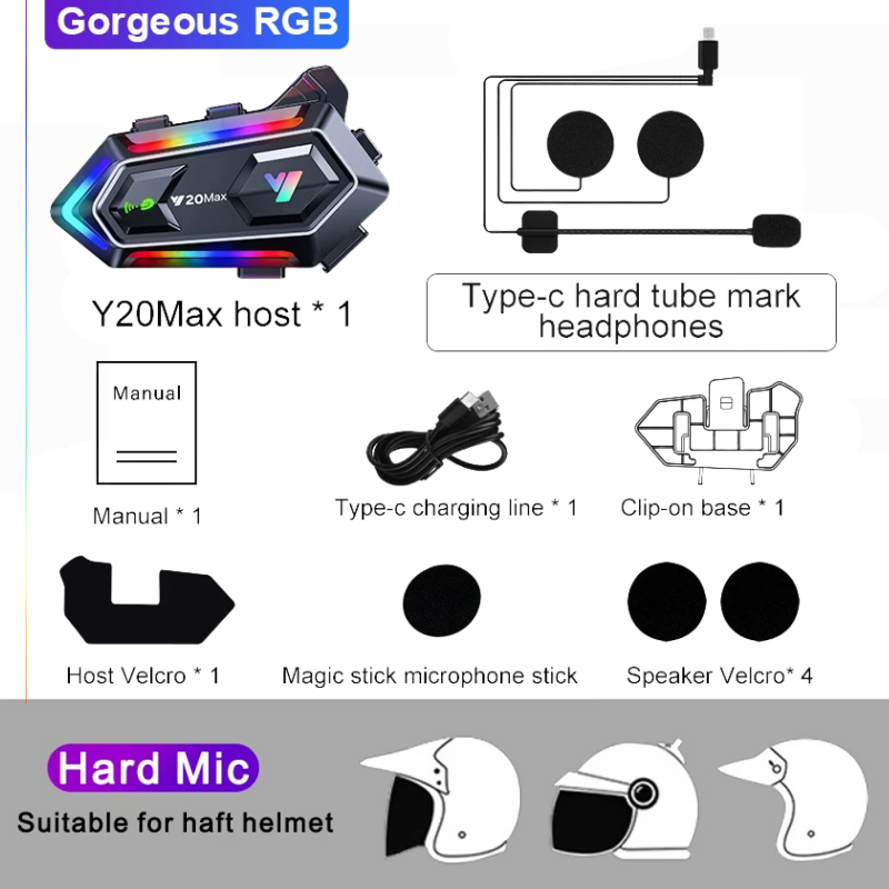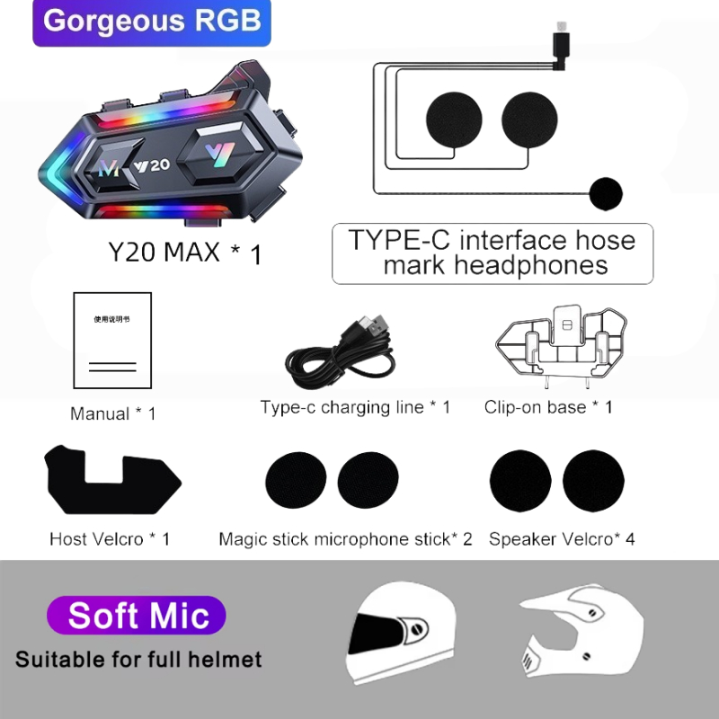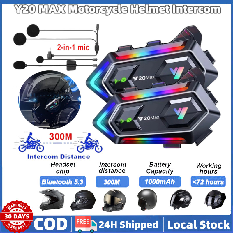 (Local Seller) Y20 MAX Helmet Intercom Wireless Bluetooth Motorcycle Headset with Microphone IPX6 Waterproof RGB Colorful Light Effect Noise Reduction 1000mAh Battery