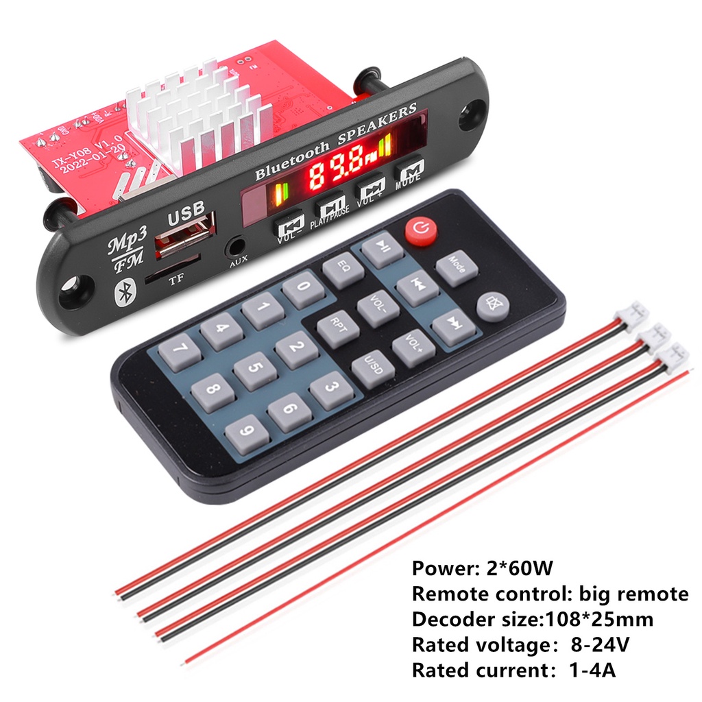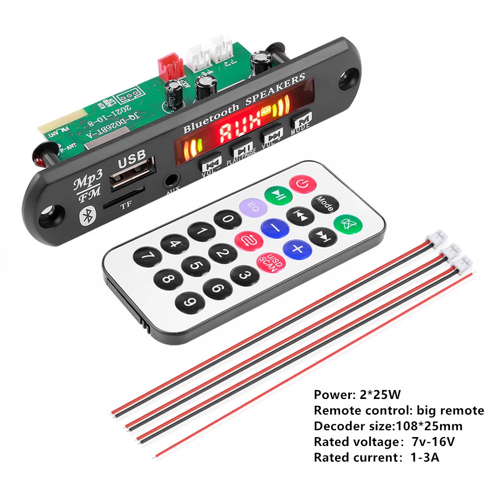 (Local seller) 120W Amplifier Bluetooth5.0 MP3 9V 12V Decoder On-Board Wireless Audio Music Modul USB FM Radio TF For Car