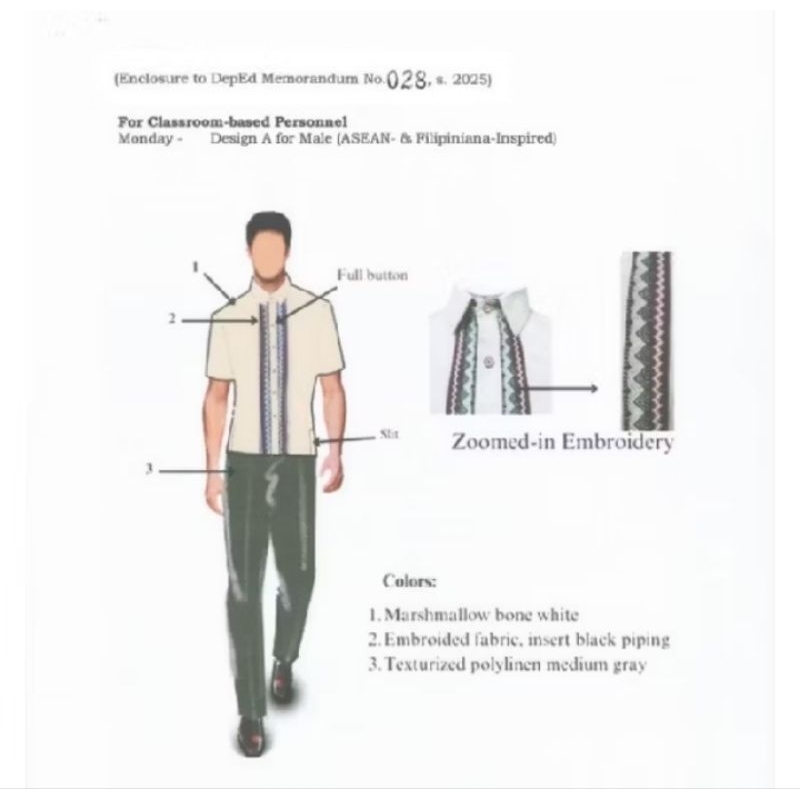 (MALE) Teachers Uniform DepEd 2025-2026 Classroom Base FABRIC ONLY