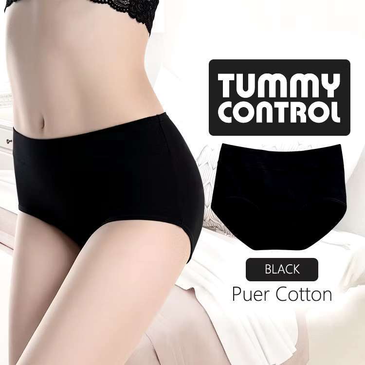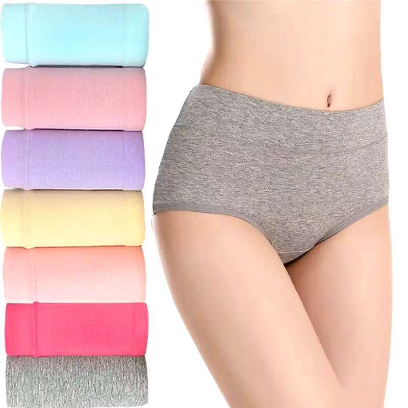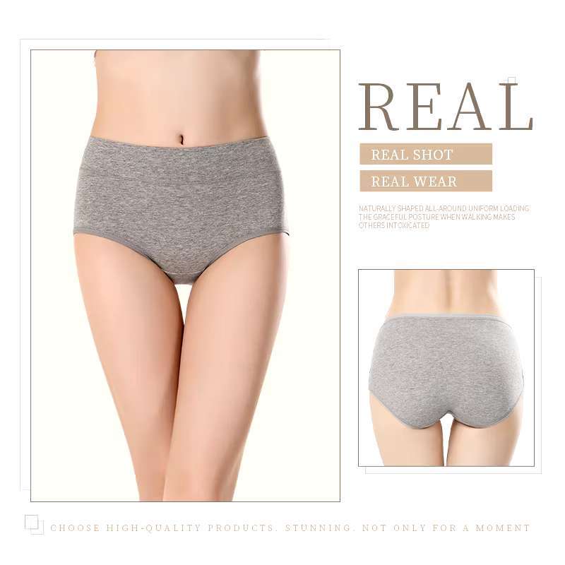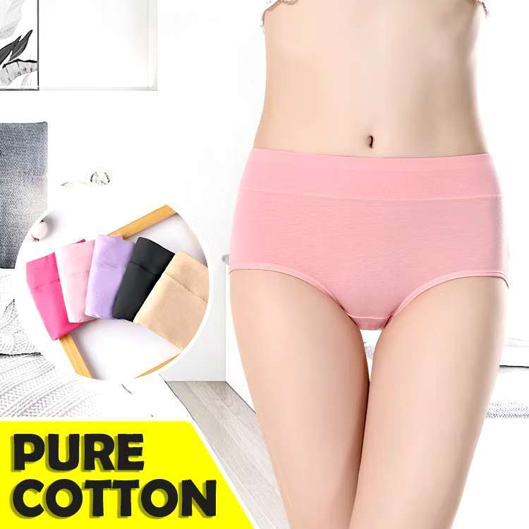 (Material Quality NO.1)12pcs Cotton Panty Mid Waist Plain Elastic Design6pcs Underwear for Women