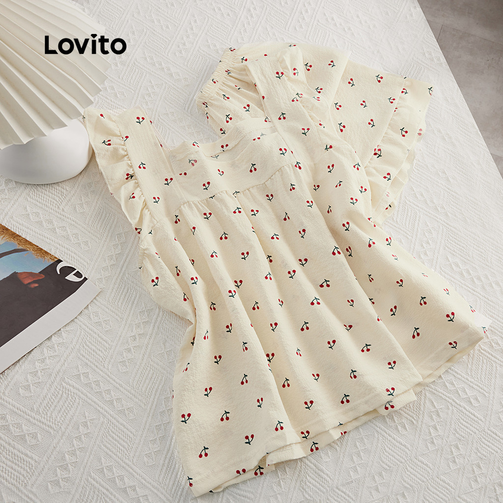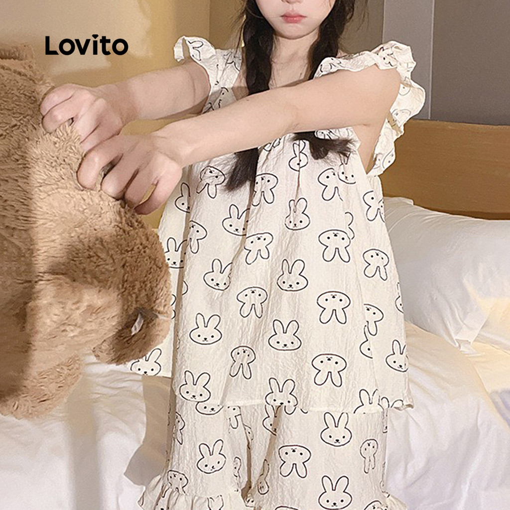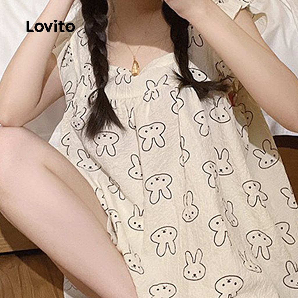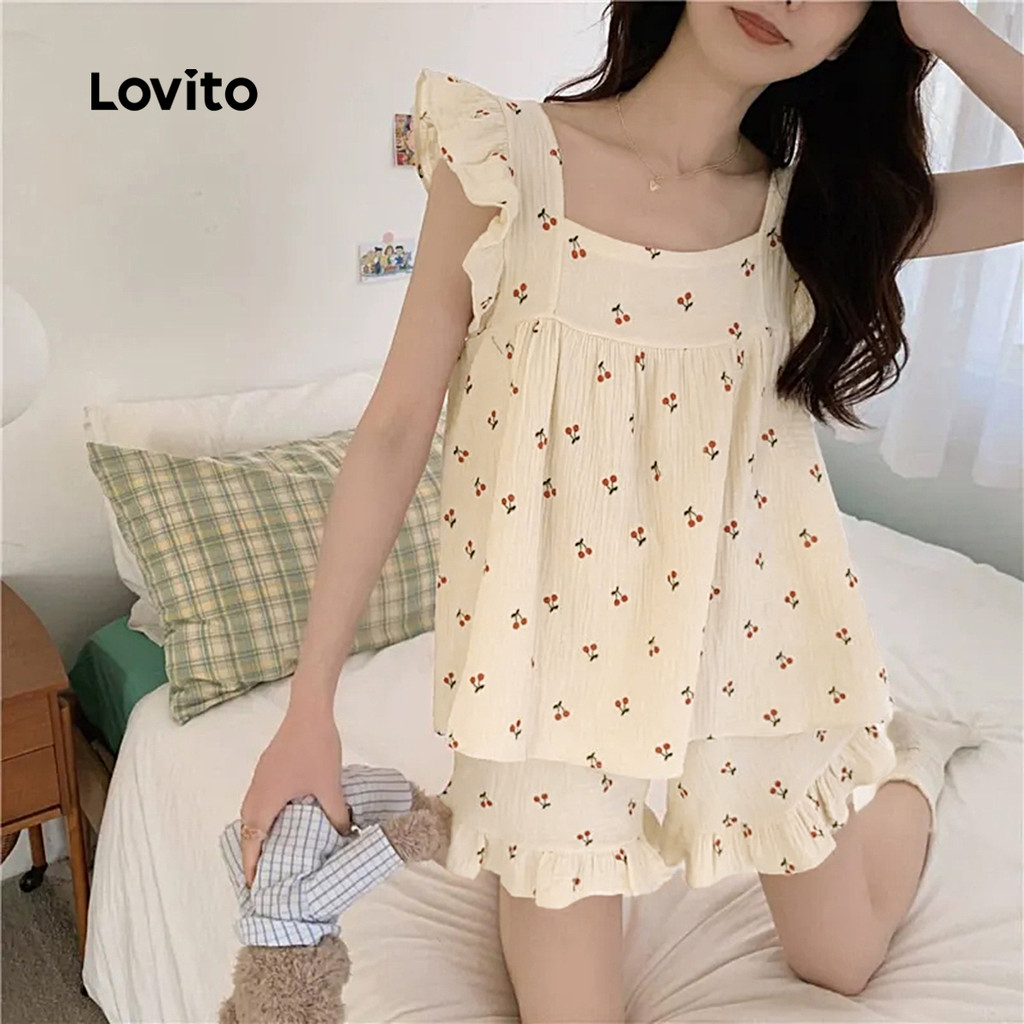 (NEW) Lovito Women Casual Pajama Sets Spring/summer Style 1 Pajama Sets LNE113157