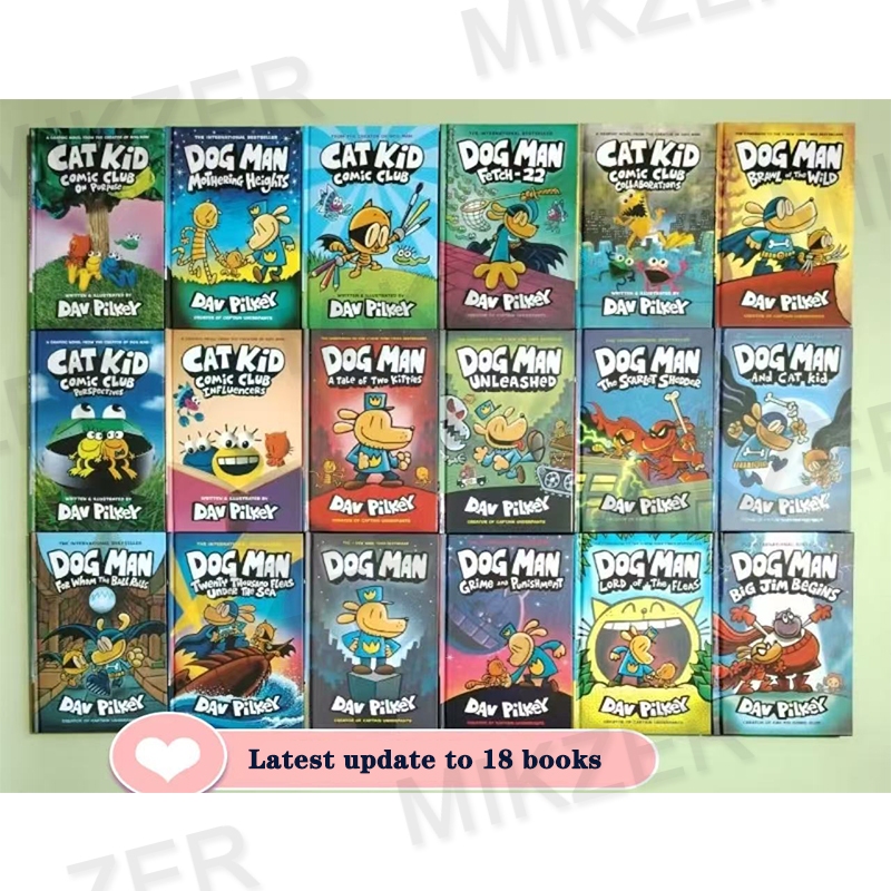 (New) Duff pilki's Dog Man comic hardcover book, a set of 18 hardcover books by Dav Pilkey